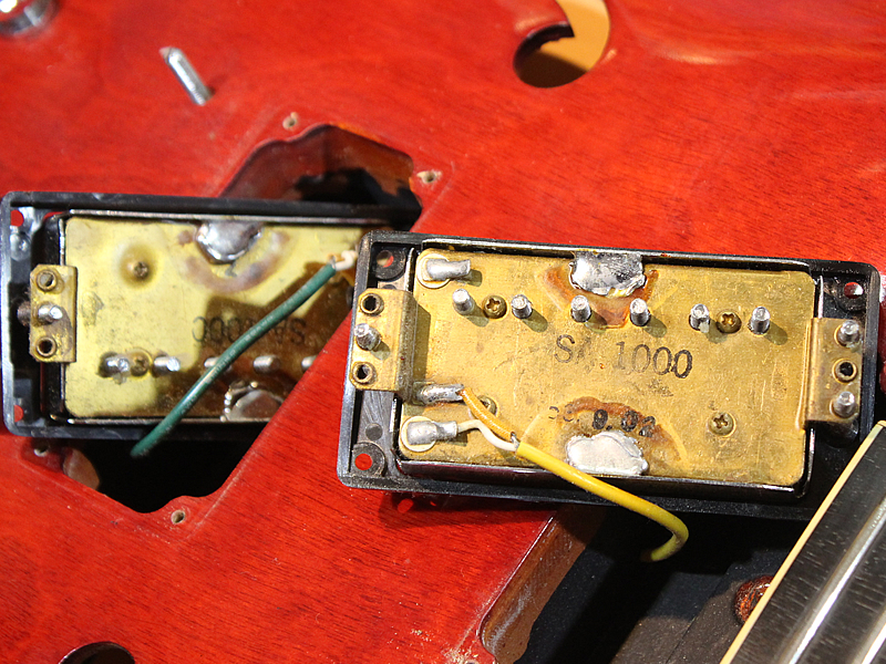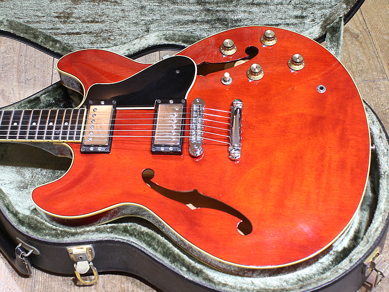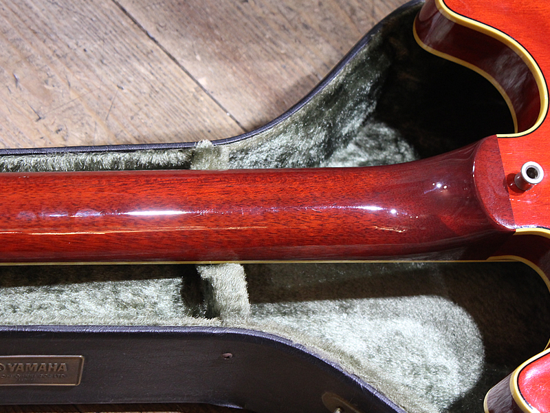 ヤマハのセミアコ、SAシリーズ。マホガニーネックにエボニー指板というスペックでお馴染みのバイサウンドシステムは搭載されておらず、シンプルな2V/2Tです。ジャスやフュージョンなどの現場で愛されたそのサウンドは分厚くメロウな質感。一方セッティングによってはロックなドライブもお手の物。シリアルから1980年製かと推測できますが確証はございません。