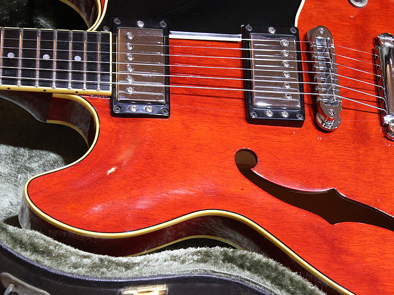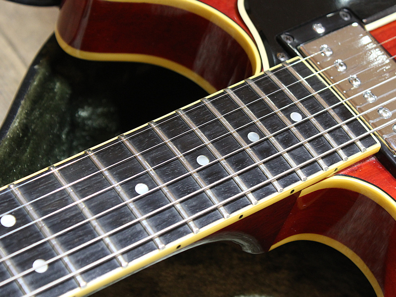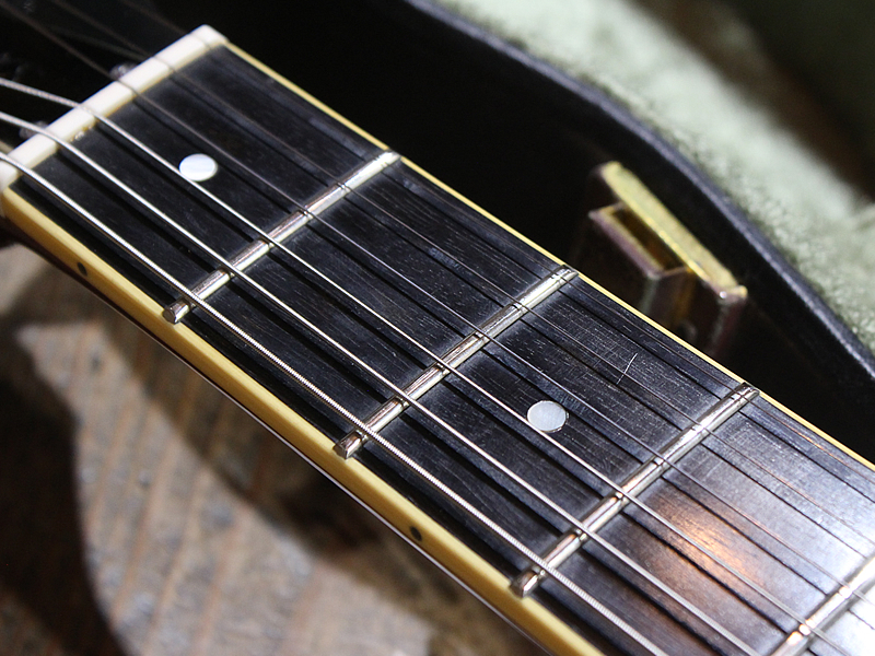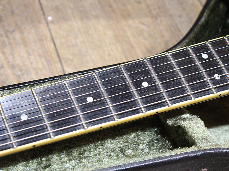 ペグが若干固めですが経年を踏まえると基準内に収まる程度です。ナットは調整されているのか、やや低め。小キズなどはあれども1970年代~1980年代の製造からを考えると美しいコンディションといえます。純正ハードケースが付属。