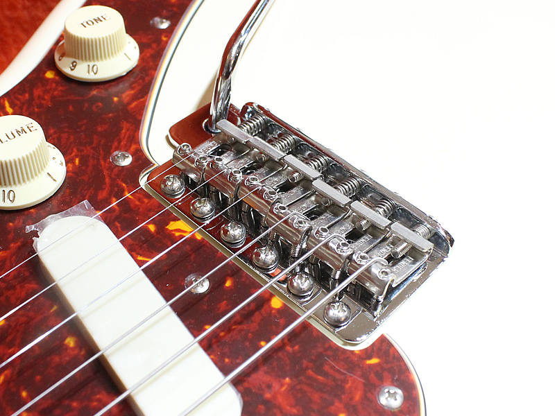 最大の特徴は2点あります。1つ目はピックアップセレクターがスライドスイッチではなく、トグルスイッチになっていることです。これにより演奏時に瞬時に切り替えることが可能。2つ目はダイナミックトレモロがストラトキャスターと同様のシンクロナイズドトレモロに置き換わっている点です。これが本機の最大の売りポイントではないでしょうか。ショートスケールのムスタングは好きだけれどもトレモロの安定性が心配...そんな方にこそ、本機をおすすめします。Char氏のようにダイナミックにアームを使っても、しっかり調整を施せばチューニングの狂いは比較的最小限に抑えることができます。