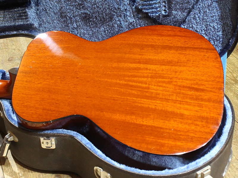 00ほどのサイズ感が魅力的。サイド&バックにはマホガニーを採用。こじんまりと温かい音色でフィンガースタイルにとっては心地良い響きをしております。