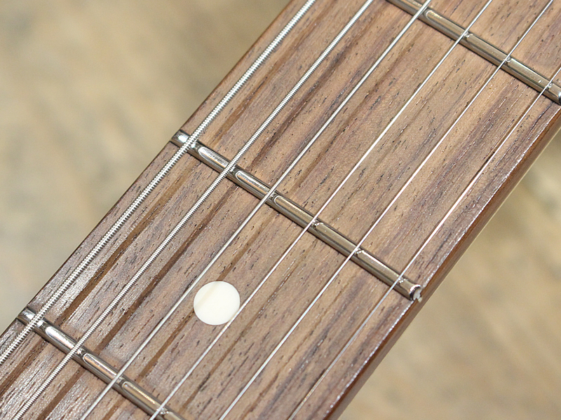 スケールは通常のロングスケール648mmより18mm長い、666mmスケールを採用、これが本モデルの一番のポイントといえるでしょう。従来のスケール長ではチューニングをドロップした際に、張り、テンションが緩くなり、ピッチの揺らぎが気になったりします。たった18mm、されど18mm長いだけでその悩みを解消したのがこの666mmスケールです。