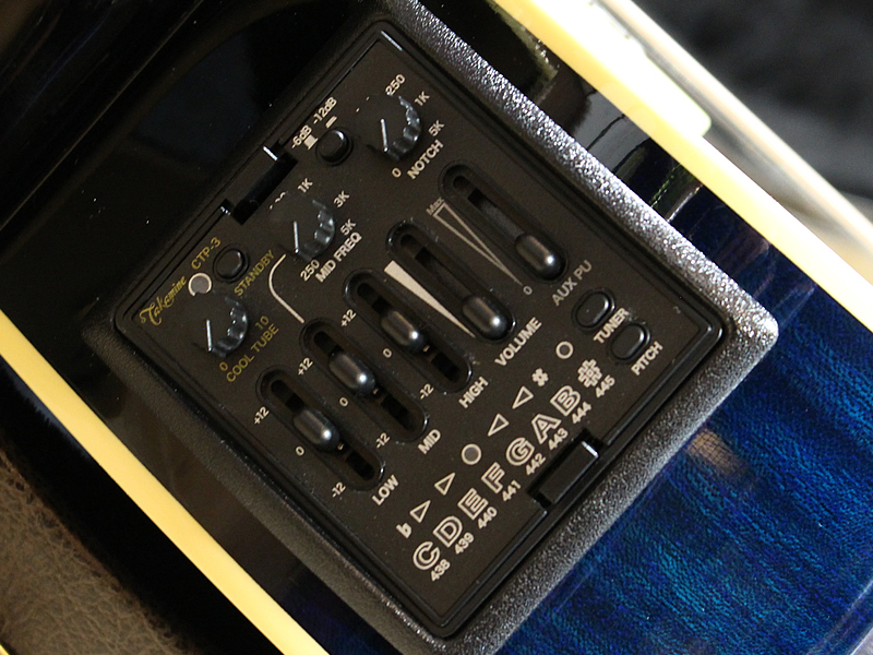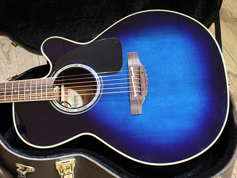 長渕剛氏の使用で人気の高いタカミネの6連ペグモデルTDPです。限定生産で常に市場にはない珍しいモデル。一般的に知られるブラックフィニッシュではなくダークブルーサンバーストという、どこかサムライブルーを彷彿とさせる雰囲気が素敵。