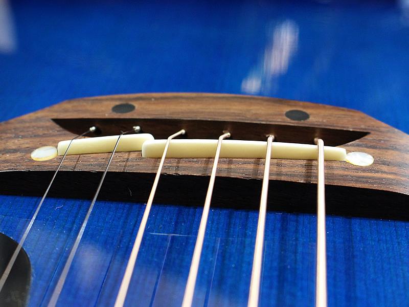 トップとバックが単板で、サイドは合板というチョイス。ステージでエレアコとして使用するのが前提のタカミネとしては、本体が変に鳴りすぎず、ストレートな音色をプリアンプで増幅させるほうがクリアかつダイナミックなサウンドを出力できる、という解釈なのでしょう。