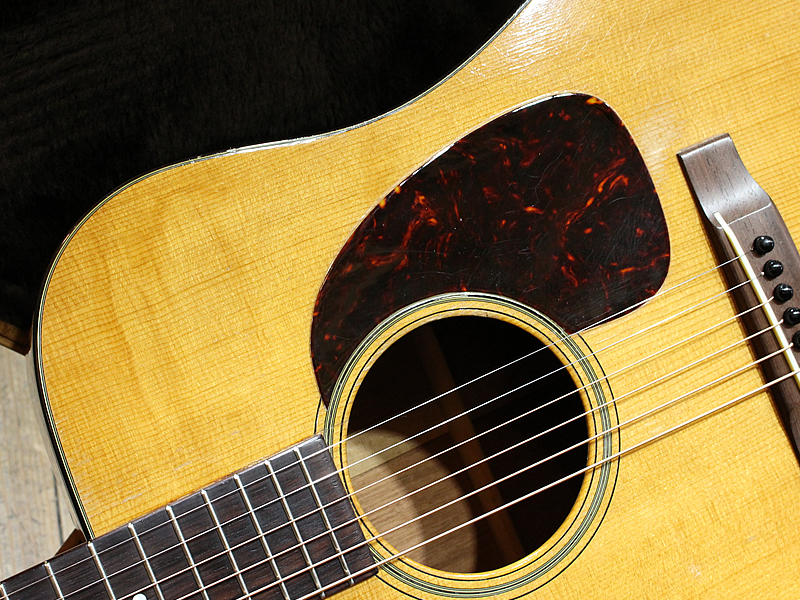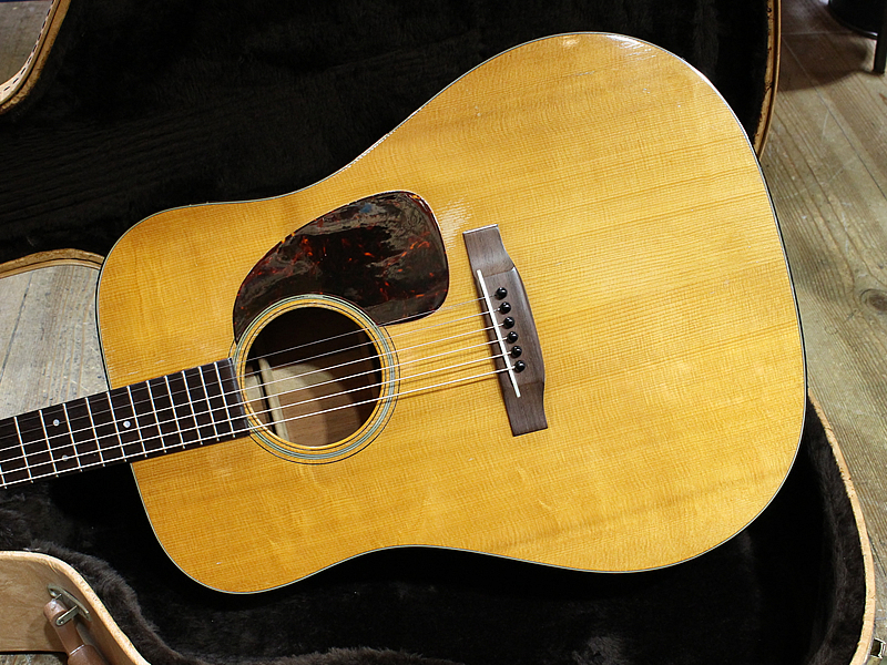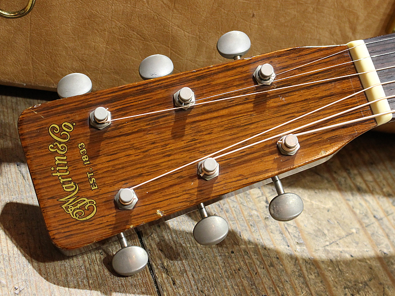 1958年製造。MartinのD-18です。18シリーズは当時のラインナップの中でもリーズナブルな位置に属しますがマホガニーの柔らかで繊細なサウンドに魅せられるギタリストも多く、玄人好みのモデルともいわれたり。高級材の方が音が優れているとは一概には言えないエピソードですね。それぞれの材に優越ではなく、個性があり、アコースティックギターは特にそれが顕著に表れると思います。
