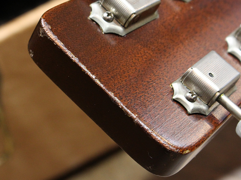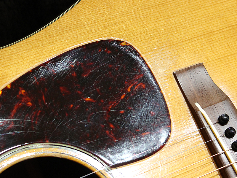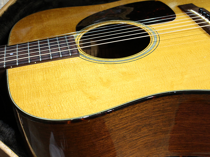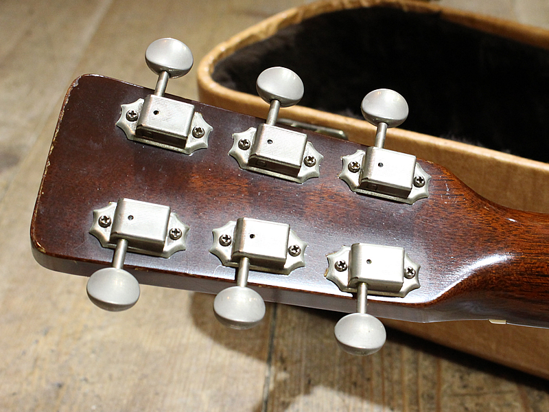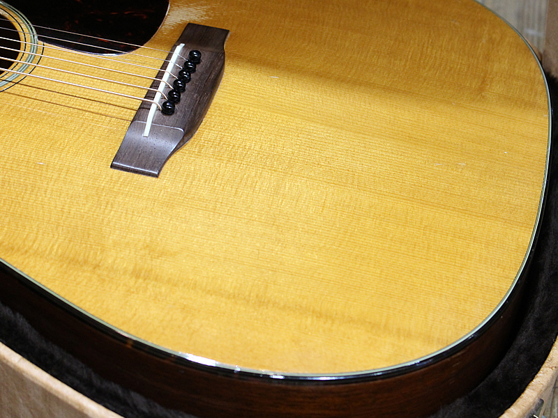 ウェザーチェックあり、木部のクラックは無し。保護のためオーバーラッカーされています。ペグ、ナット、フレット、ブリッジ、サドルなど演奏面において重要なポイントも交換され、これからさらに弾きこんでゆくには安心の状態となっております。オリジナル度合いは低いですがガシガシ使っていく一本をお探しの方へおすすめです。
