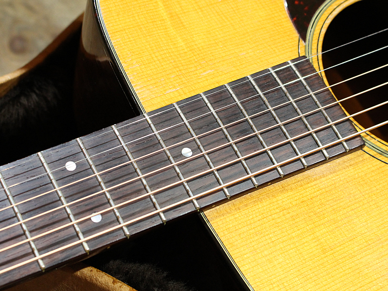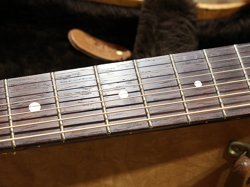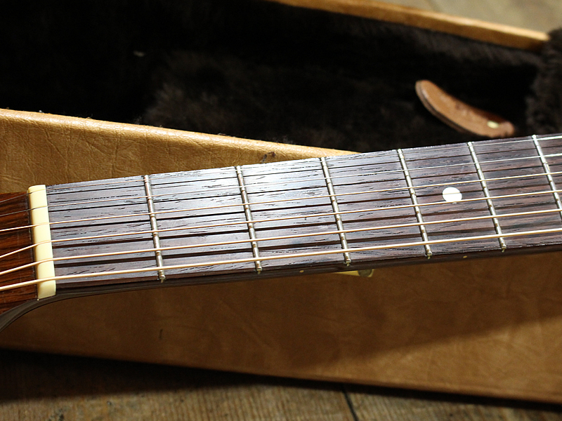 2012年に仕様が変更されまして現行モデルは戦前の仕様を踏襲しておりますが、本機はそれ以前の製造となりますので指板がエボニーではなくローズウッドが採用、恐らくハカランダと思われます。むしろ18はローズ指板という認識の方のほうが大多数でしょうか。丸みを帯びたヘッド形状。AJネックではなくSQネック仕様。トラスロッドが調整できない、固定の仕様となっております。こちらのほうが響きが好み、という方も多い仕様ですね。