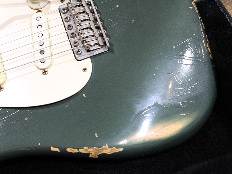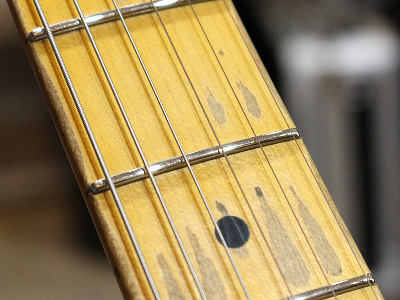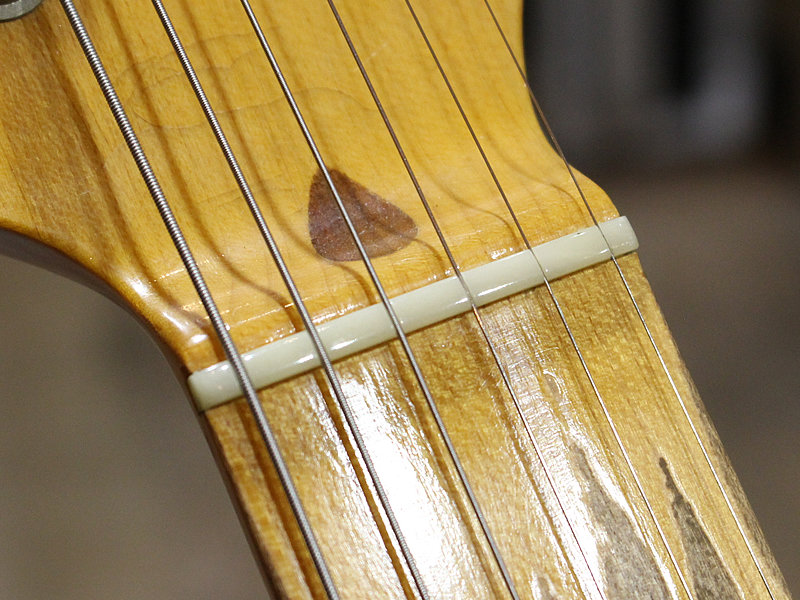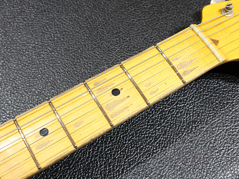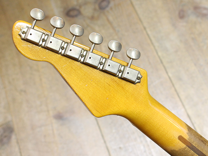 レリック加工が施されている一方、新たについた目立つ損傷は見られず美しいコンディションといえます。ナットは交換されております。ネックポケットに塗装割れあり。上質なヴィンテージ方向のストラトをお探しの方は必見の一本でございます。