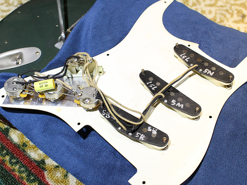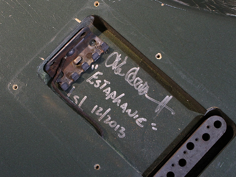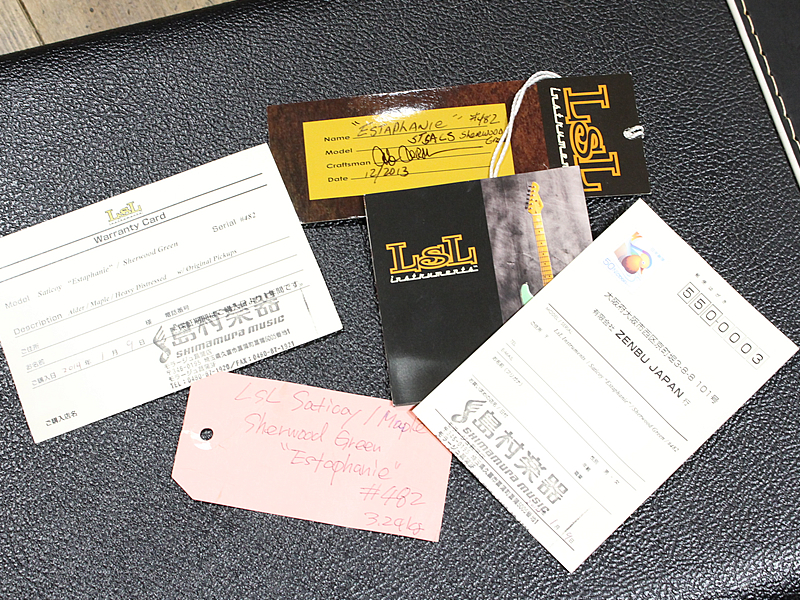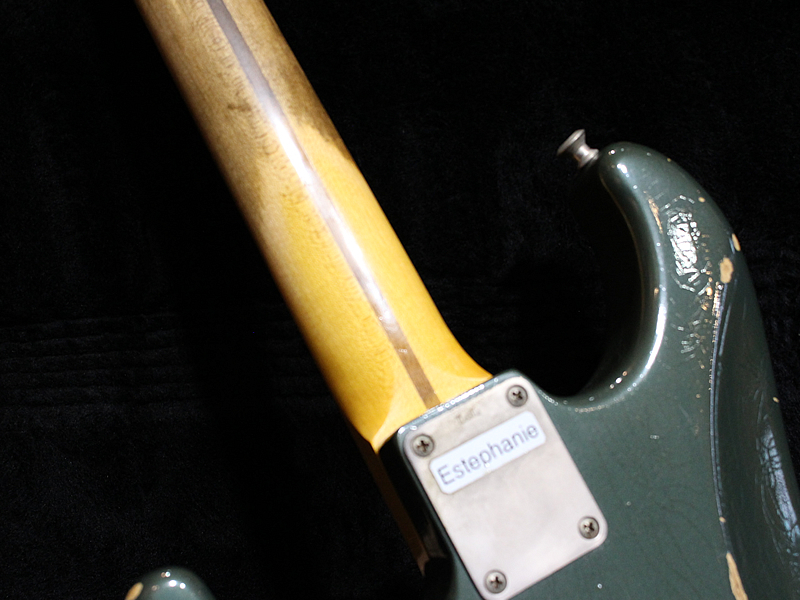 | 主な仕様 | Color : Sherwood Green Body : Ash Neck : Maple Fingerboard : 7.25"R/ 21frets Nut Width : 42mm Control : Volume, Tones & 5way Blade SW Serial Number : "Estaphanie", #482 |