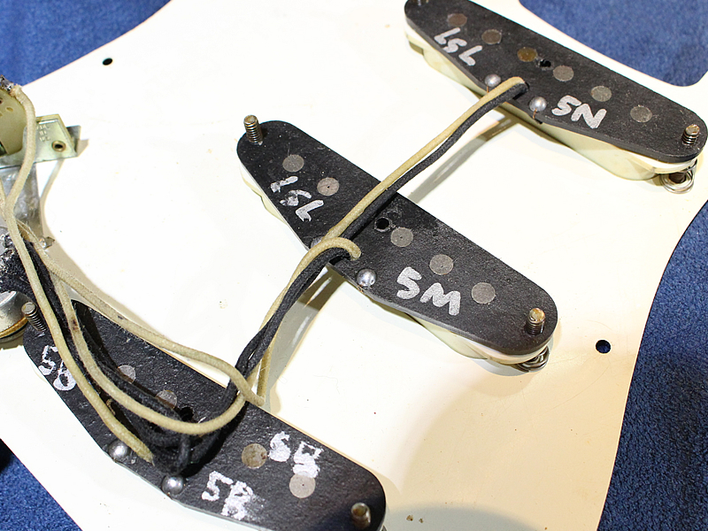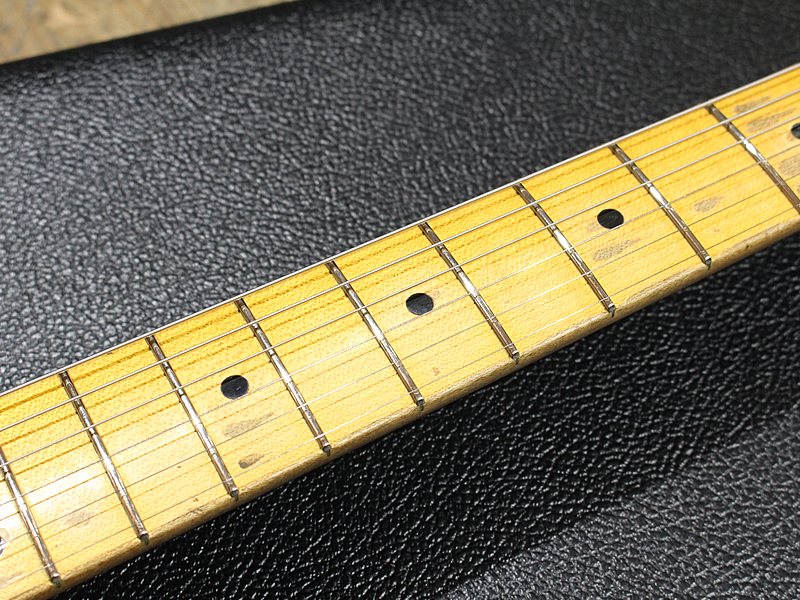 マテリアルとしてはライトアッシュのボディにメイプル1ピースネックという1954年スタイルを踏襲。総重量が3.25kgという軽さが枯れ感の一因であることは間違いないでしょう。ピックアップはオリジナルのもの採用しております。エレキギターなのでココが要なのは言うまでもありません。手巻き特有のエアー感、オープンなダイナミックレンジ、不均等なピーク、それぞれが味わい深い要素として昇華されている印象を受けます。