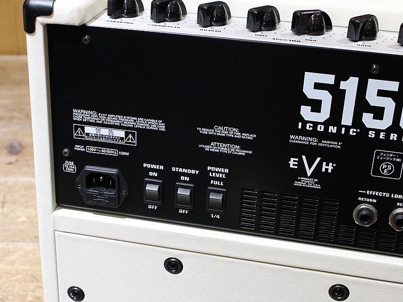 | 主な仕様 | 出力 : 15W スピーカー : 10" EVH Celestion Custom 真空管 : 12AX7 x2, 6L6 x1 寸法 : 37 x 57 x 60 cm 重量 : 19.5kg |