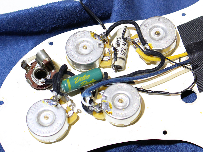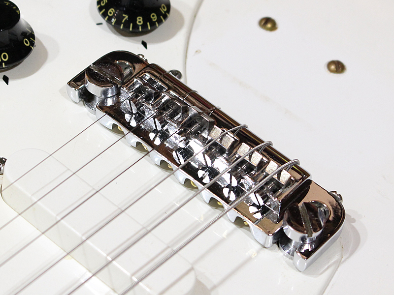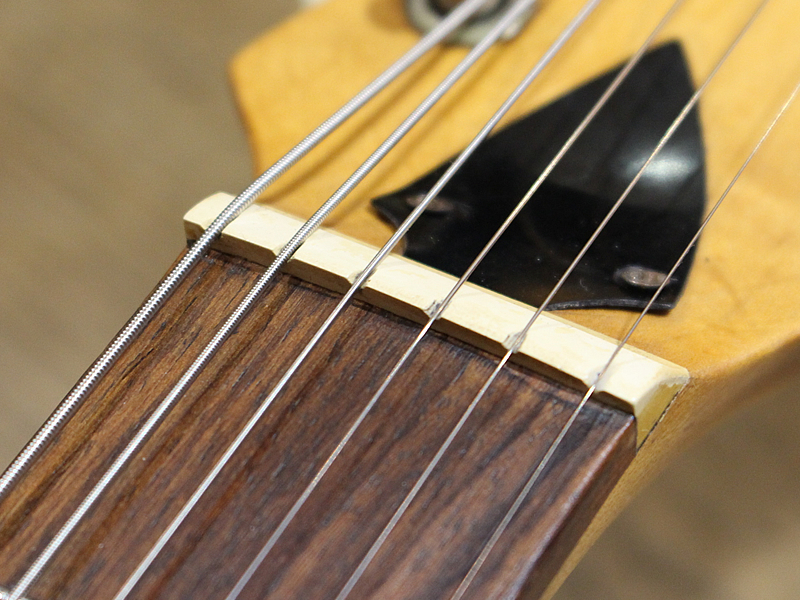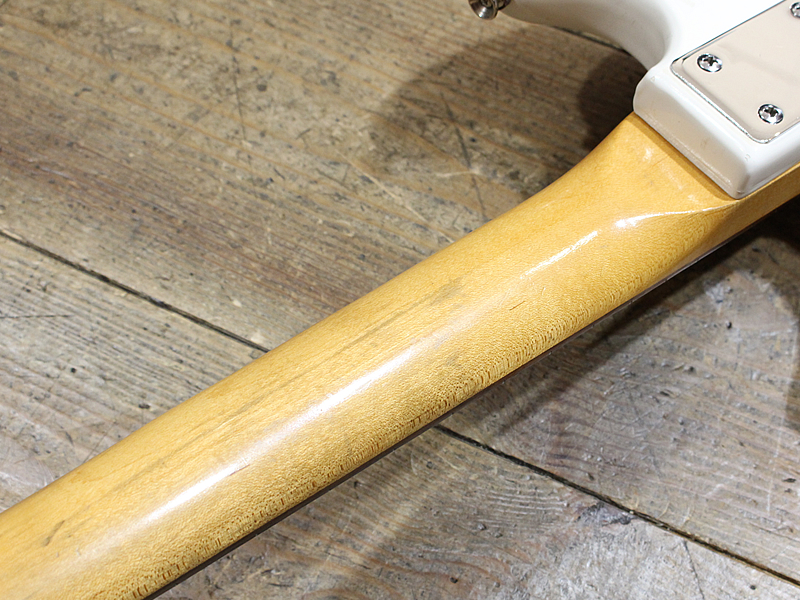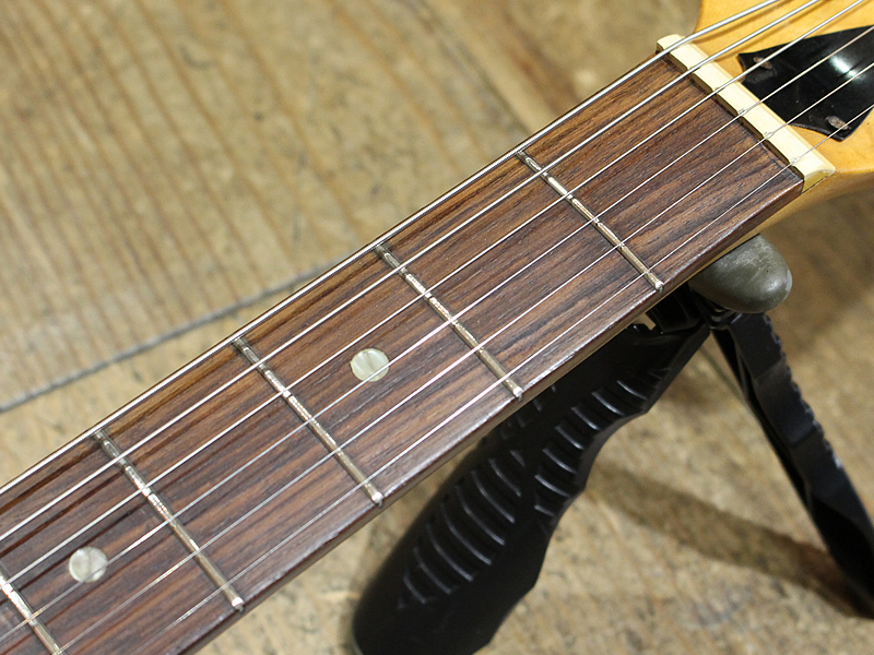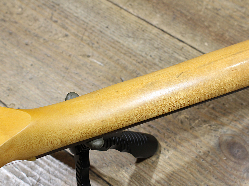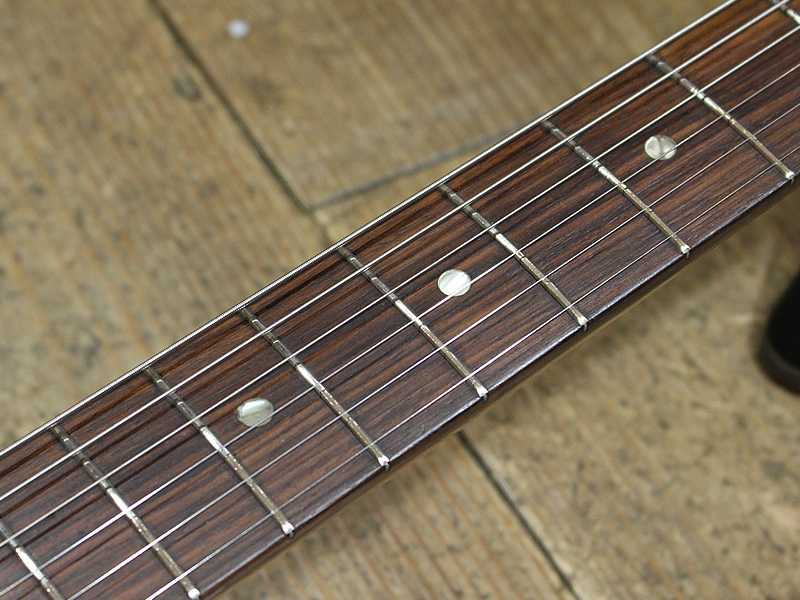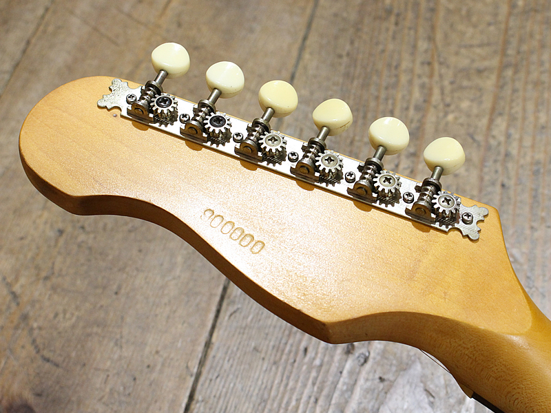 ペグはオリジナル。ギアが摩耗しており固め。また曲がっているものもありますが、一応年度を鑑みた機能としては基準内としております。ナットはオリジナルですが交換推奨、1弦の溝を補修して出音は辛うじて確保しました。ポットは交換されています。スイッチは切替の際音切れがあります。