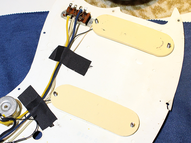 ピックアップはMelody Makerのものが流用されています。ムスタングタイプのスイッチは3wayとなっており、操作し辛いですがこれでピックアップを切り替えます。