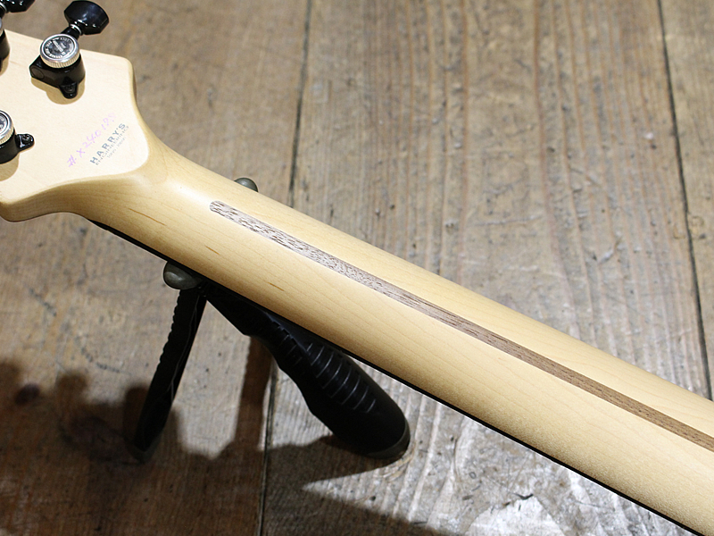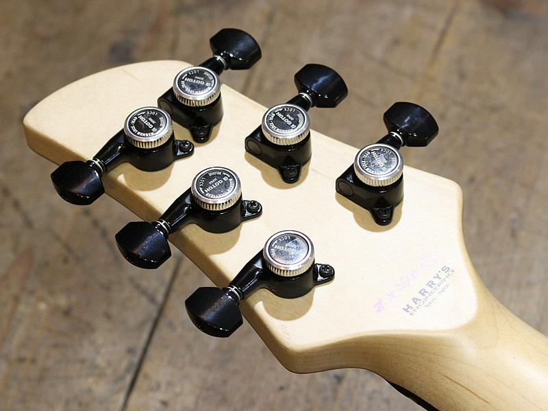 弦交換が容易なロックペグ、摩耗に強いステンレスフレット、ハイゲインでありながらワイドレンジなオリジナルピックアップなど盛りだくさん。ミニスイッチはピックアップのタップスイッチです。ボリュームとトーン...ではなくハイパス&ローパスコントロールです。もちろんパッシブで、センタークリックがありハイカットorローカットが可能となっております。わざとらしくなく、さりげなくカットする塩梅が絶妙です。