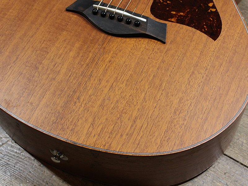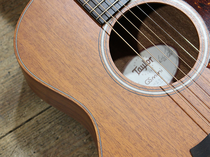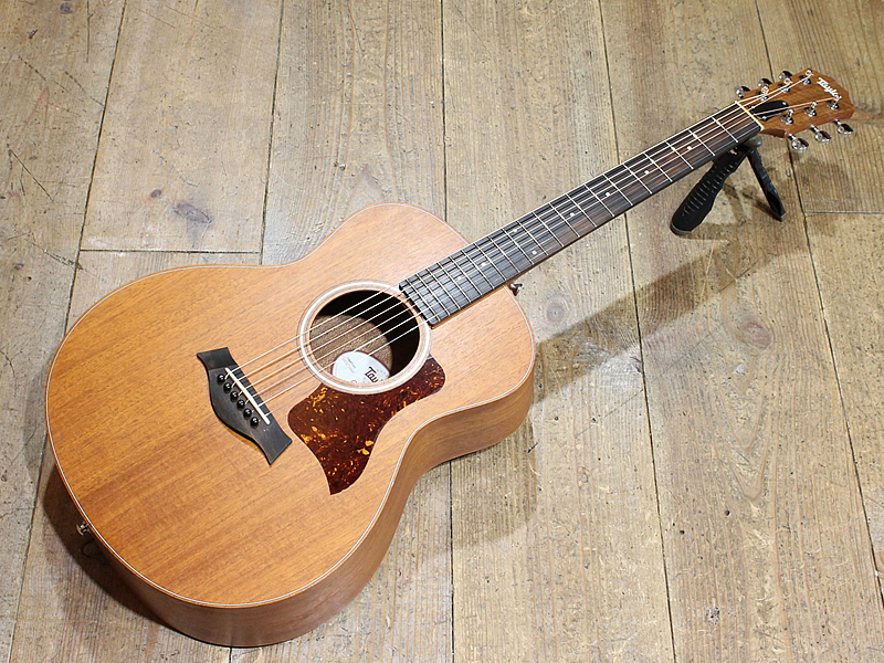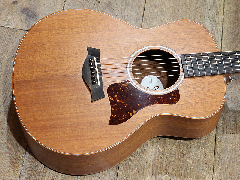 ミニサイズのテイラーアコギ。数あるテイラーラインナップのなkでもこのGS Miniシリーズは人気があります。本機はマホガニートップに、サイドバックはお馴染みサペリを用いたマテリアル。指板はエボニーです。ソファに座ってリラックスながらに弾いたりするには最適なサウンドとサイズ感です。ピックアップは日搭載ですので素材のままの響きを楽しめます。