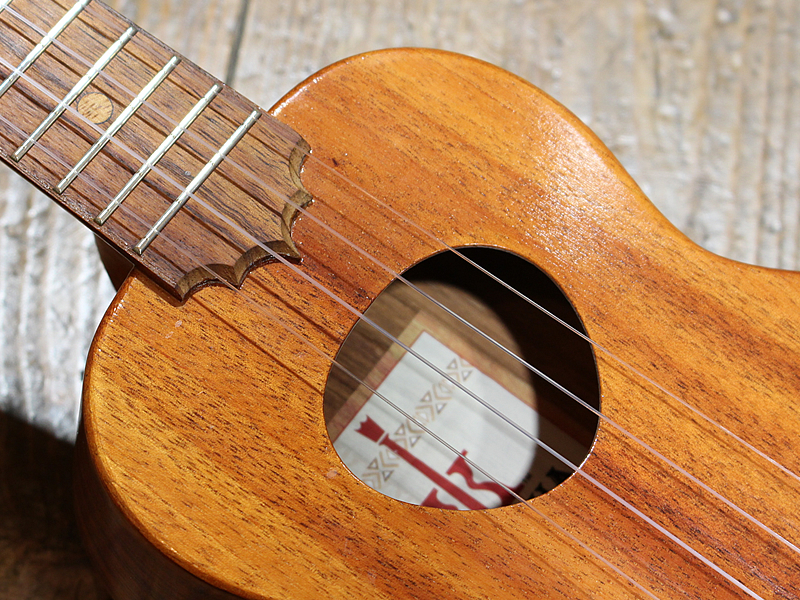 ウクレレの代表的なブランドであるコアロハ。定番のソプラノウクレレ、KSM-00です。ハワイアンコアのボディにマホガニーネック、指板はおそらくパーフェローかと思われます。コロコロとした音色は優しい気持ちになれます。