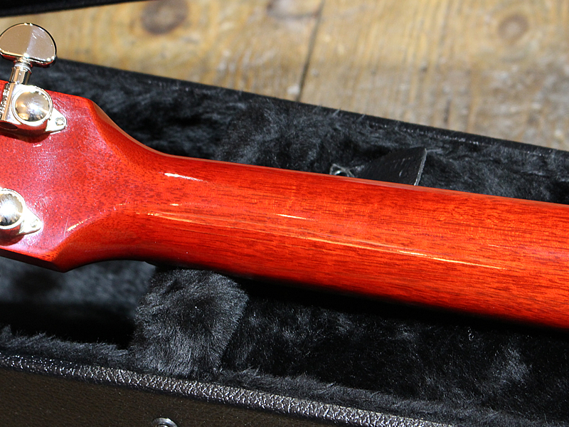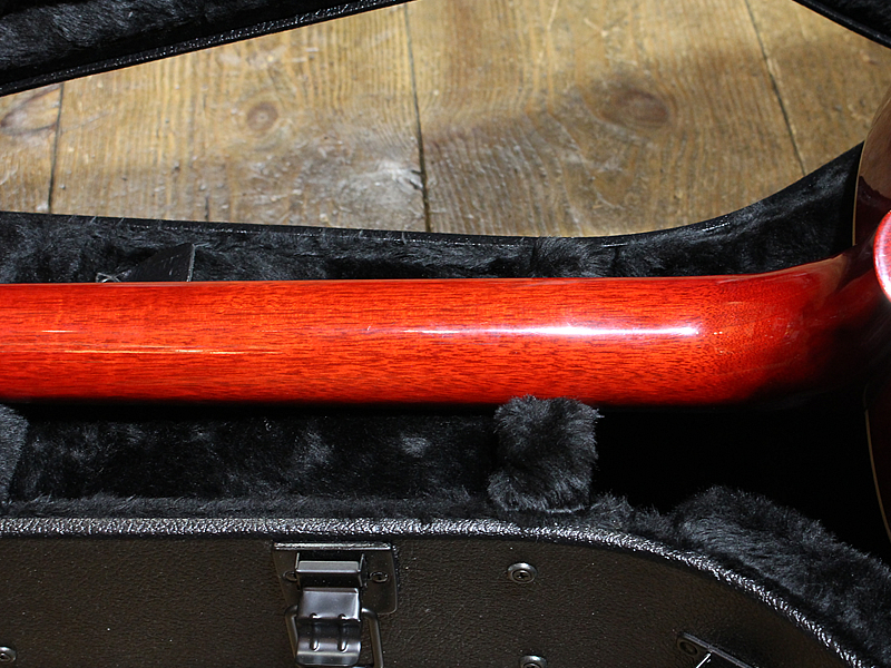 弦高が低めで弾きやすい。外装は美しく、小キズなどはあれど使用感は感じないコンディションです。近年の黒いハードケースが付属します。