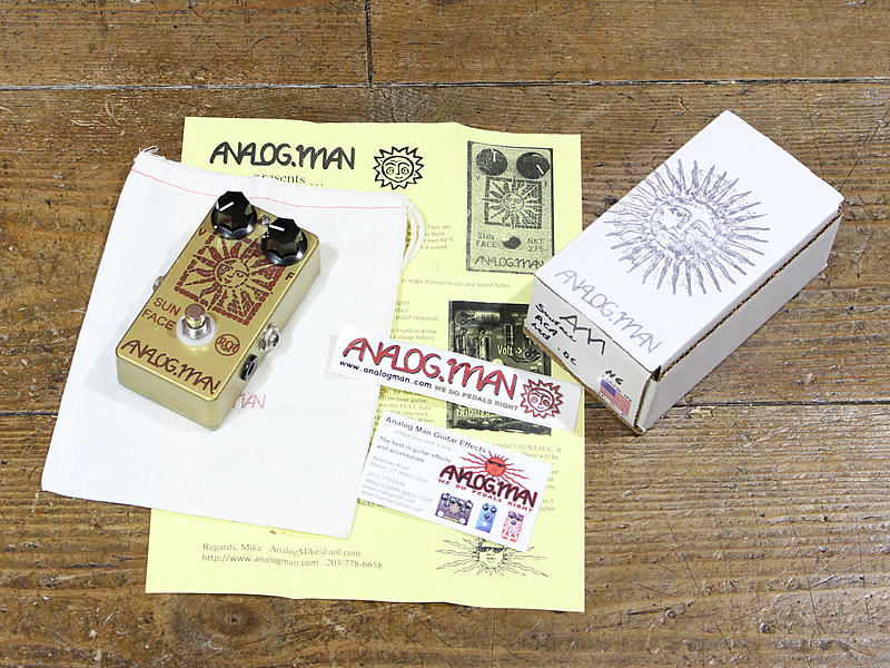 アナログマンの代表的なモデルであるSUNFACE。FUZZ FACEのサウンドを目指して製作され、数多くバリエーションが存在します。