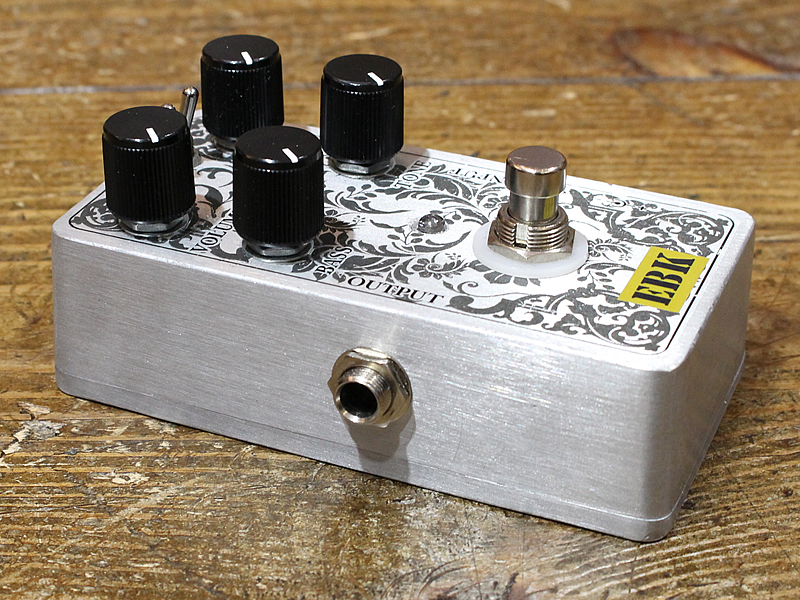 フリマサイト等で展開されております、ハンドメイドペダルブランド「EBK」。世界中で台数が少なく、今となっては高額なプレミア額で取引されるIbanez×Vemuram TSV808のクローン。ミニスイッチは内部のDIPスイッチを表出していると思われます。ハマった時の音質はなかなかブルージィな歪みを聴かせてくれます。