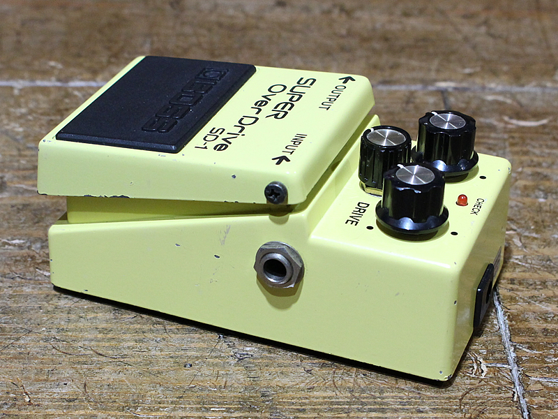 緑のオーバードライブとともに、この黄色も触ったことのないギタリストは数少ないのでは。1981年からロングセラーを誇るSD-1です。 ナチュラルなミッドレンジが際立つことで、美しいギターサウンドを手軽に演出できます。1987年、日本製。艶ありJRC4558DD搭載。
