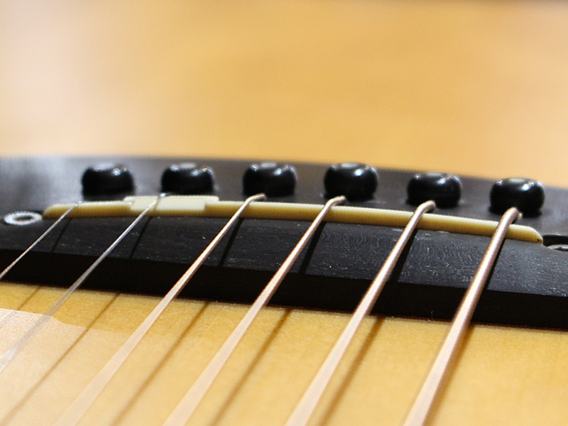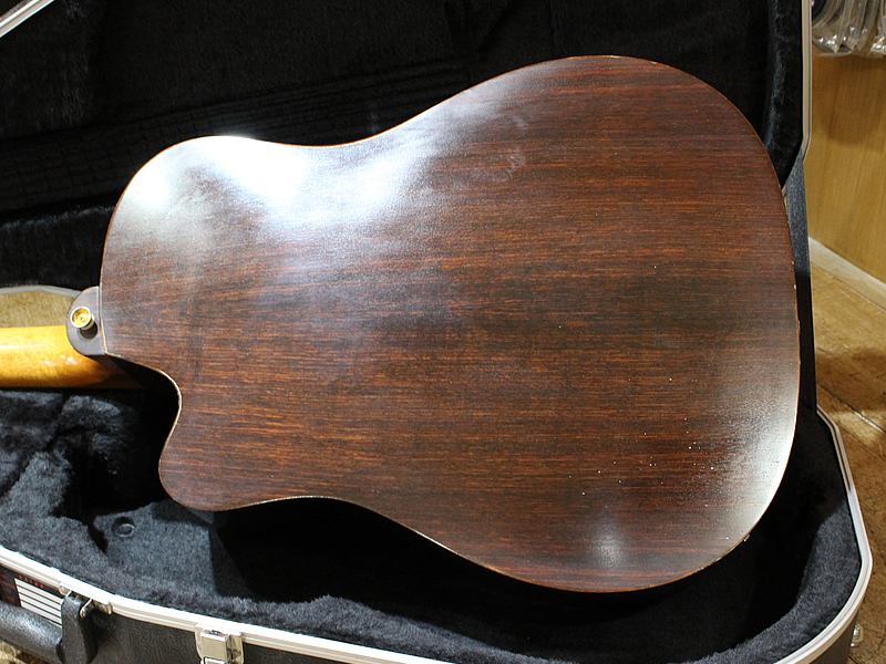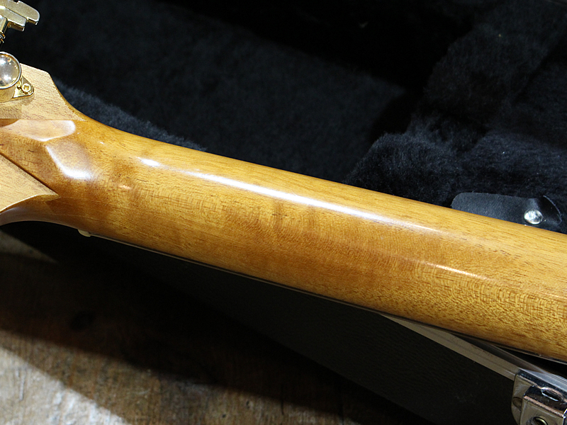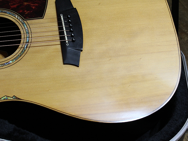 使用感あり。塗装割れ、曇りあり。と使用感はございますがナットが低く調整されているので、弦高はエレキ並みに低く、プレイアビリティは良好です。