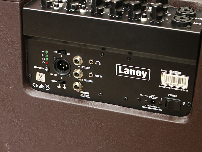LANEYのアコースティックギター用コンボアンプ。60Wの出力で8インチスピーカーを1基備えております。ファンタム電源を供給できるマイク用インプットも備えており、これ一台で弾き語りライブができます。