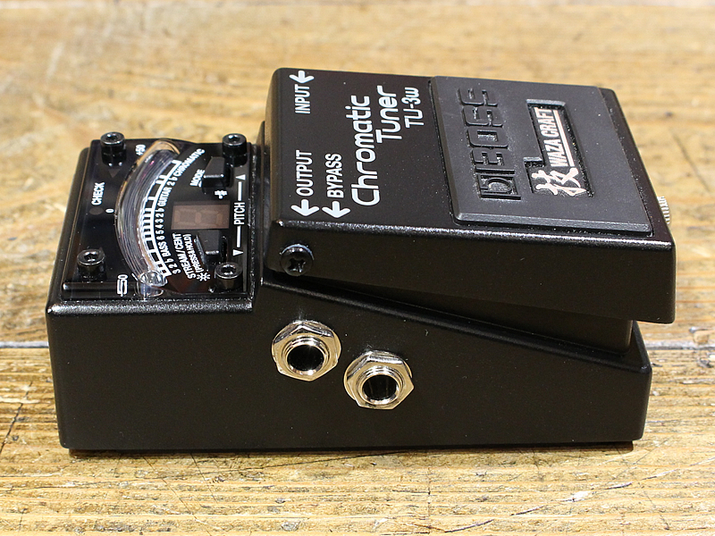 技クラフトのチューナーTU-3W。ON/OFF可能な高品質なバッファを備え、ブラックの筐体とブルーのLEDで高級感ある佇まいに仕上がっております。通常モデルのほんわかしたカラーリングも良いですが、ルックス、サウンドともにシュッとした本機も選択肢に入れてみてはいかが。