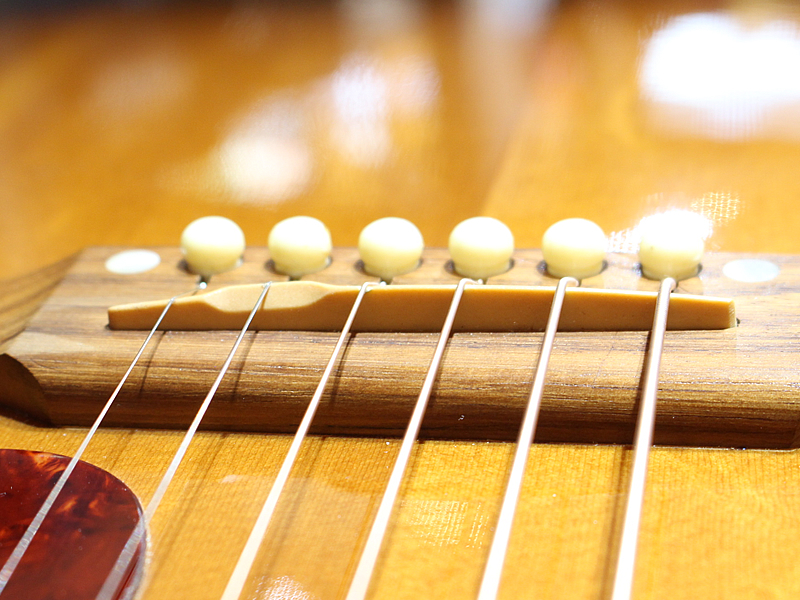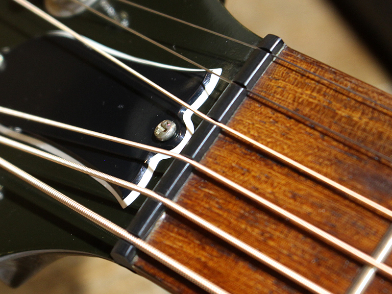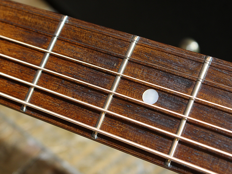 ピックアップはボリュームのみのL.R.Baggs FIVE-Oかと思われます。サウンドはアンダーサドル型のダイレクトなキャラクターで、バンドアンサンブルでもしっかりポジションをキープできることでしょう。