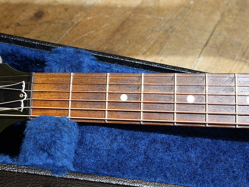 指板に爪による凹みあり。ピックキズや打痕などの使用感はございます。ライブでガツガツ弾きたい方には持ってこいの一本です。
