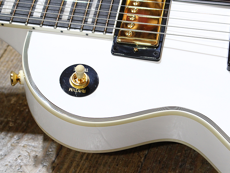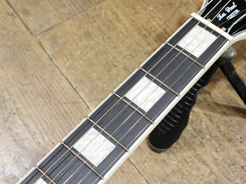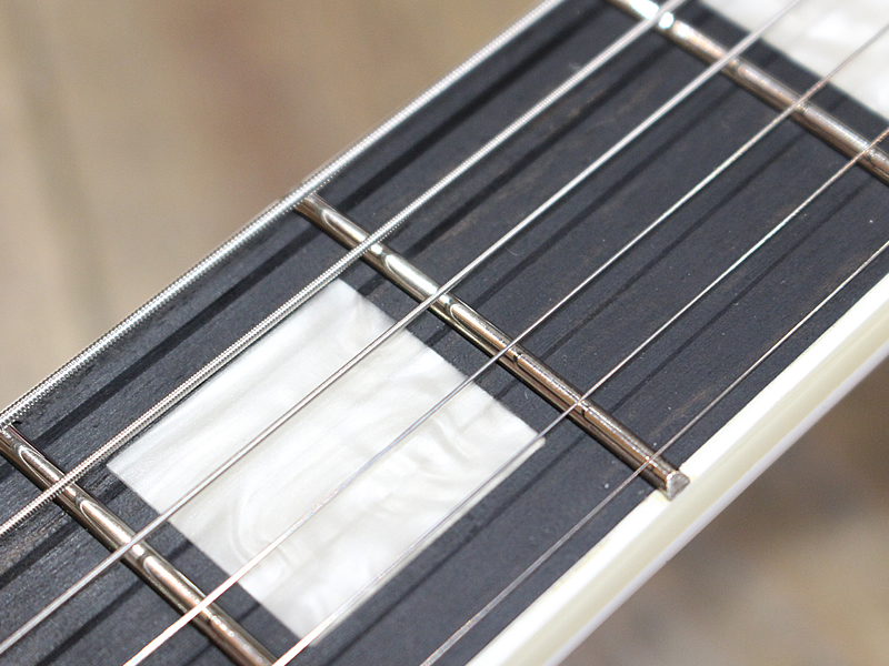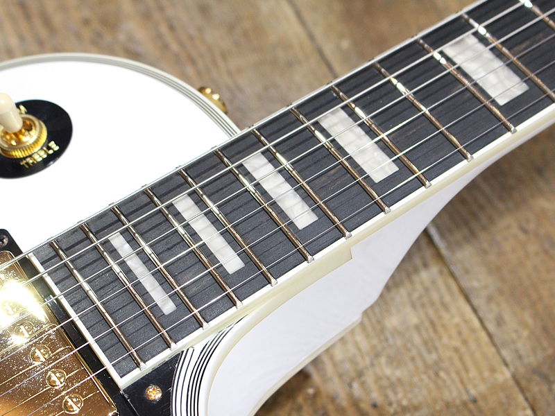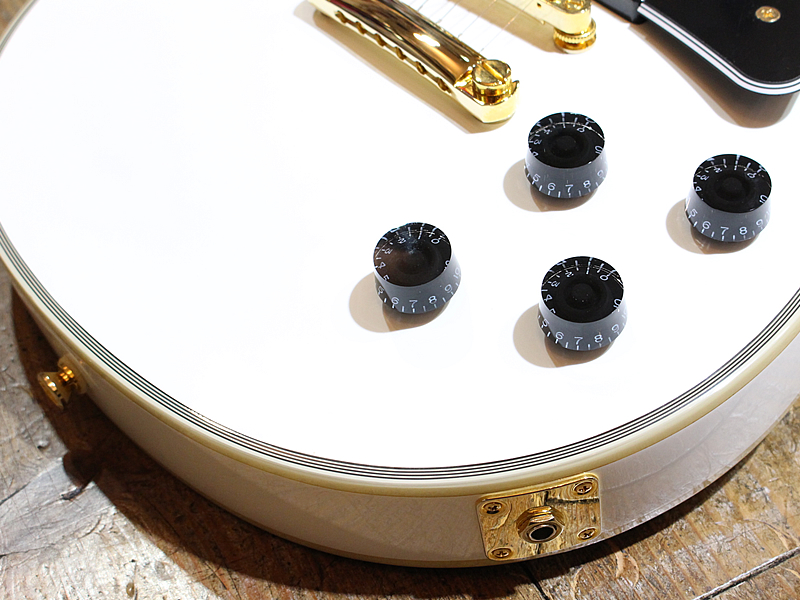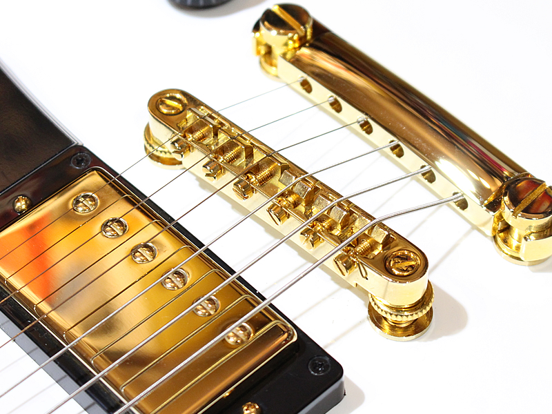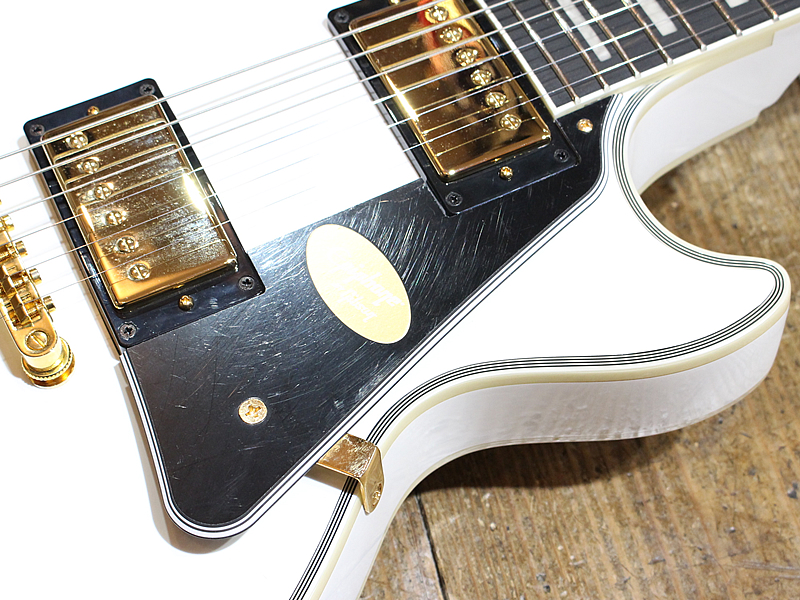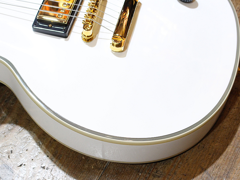 トラッドな仕様のInspired by Gibsonシリーズ。本機は白いレスポールカスタム、なんとも精悍なルックスです。メイプルトップではなく、オクメorサペリのボディでエボニー指板ということで1957年風のチョイスとなっております。ピックアップはProBucker2と3を搭載し、クリアでレスポンスの良いキャラクターが好印象のサウンドとなっています。もちろんハードに歪ませてもグッド、様々なジャンルで活躍できるレスポールカスタムです。