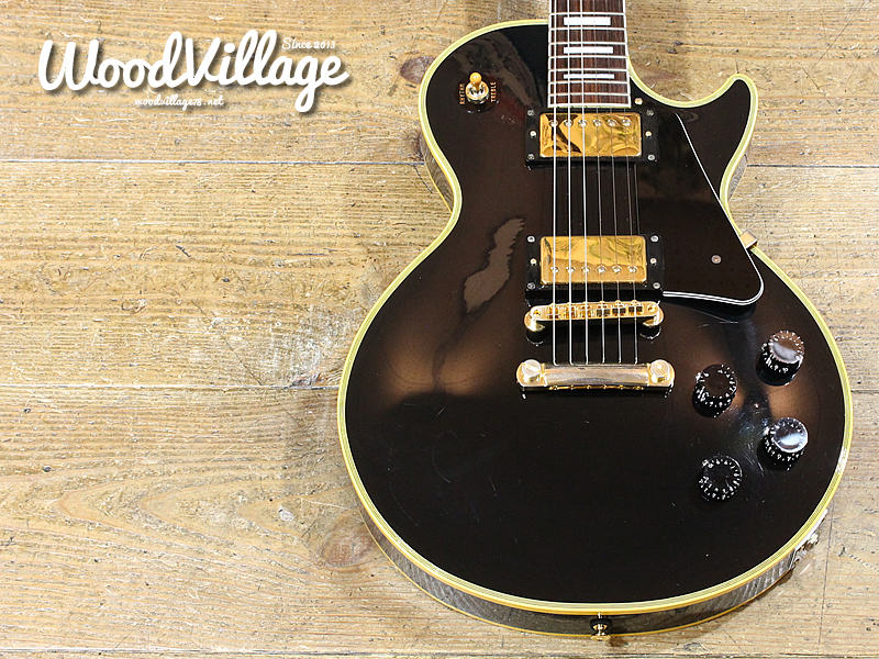 2005年製造と思われる。日本製(フジゲン製造)のエピフォンレスポールカスタムです。2000年代半ばに日本国内でのみ販売されていた期間限定モデル。極薄のラッカー塗装とギブソンヘッドが大きな特徴で、日本製エピフォンのElitistと同じ書体のロゴがヘッドに輝きます。
