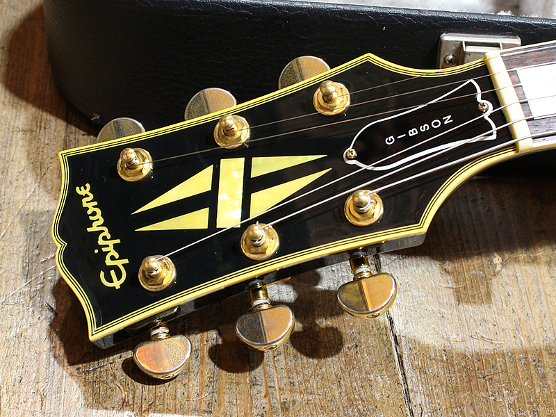 | 主な仕様 | Color : Ebony Body : Maple/Mahogany Neck : Mahogany Fingerboard : Rosewood/ 22frets Nut Width : 43mm Pickups : Epiphone Original Humbucker Control : Volumes, Tones & 3way Toggle SW Serial Number : F501264 |